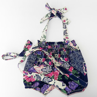 For fun, I designed this new pattern. It features a pull on style (no velcro) with the darling halter style ties.